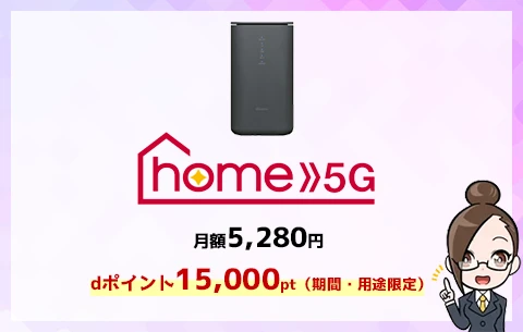 なお、ドコモ home 5Gはドコモオンラインショップ経由にて契約するとdポイント15,000pt(期間・用途限定)がもらえるため、お得に契約することが可能です。
